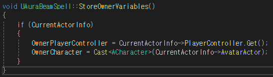어빌리티에 대한 CurrentActorInfo를 가져와 PlayerController와 AvatarActor를 캐싱한다