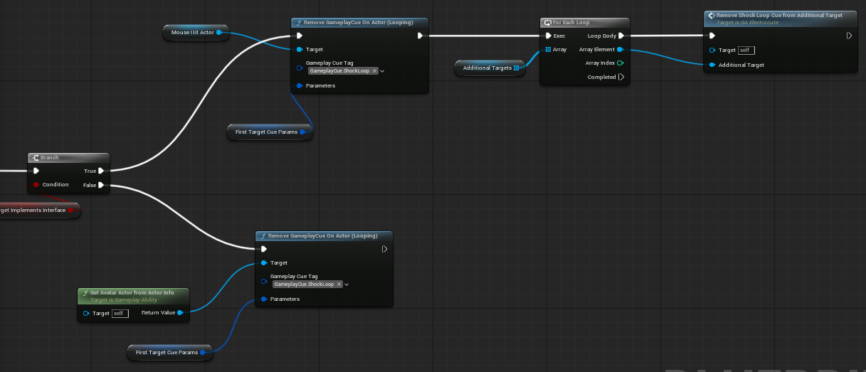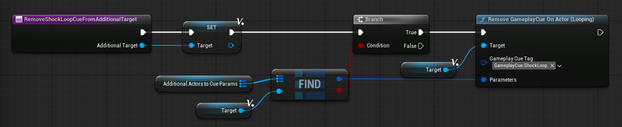 RemoveShockLoopCueFromAdditionalTarget 함수를 호출하여 연쇄 피격된 대상들에게서도 GC를 제거한다