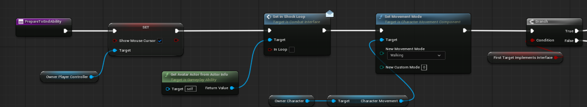 어빌리티의 Owner의 CharacterMovementComponent를 설정하여 다시 움직일 수 있도록 설정하고