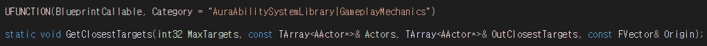 - 매개변수로 받은 MaxTargets의 수만큼 DistanceActorPairs의 데이터를 OutClosestTargets에 저장