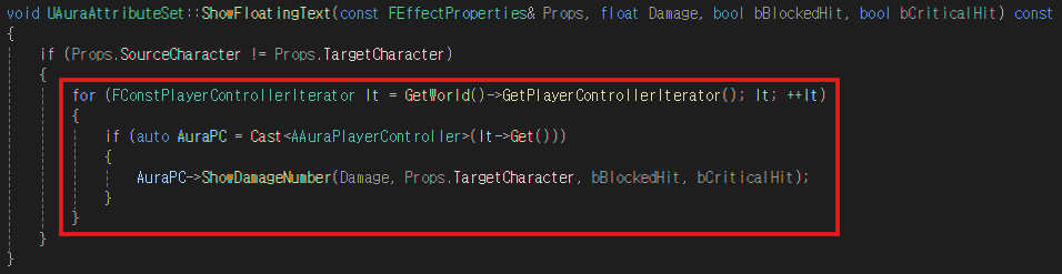 데미지를 입히거나 데미지를 입은 경우 팝업되는 UI를 모든 플레이어가 확인할 수 있도록 설정한다