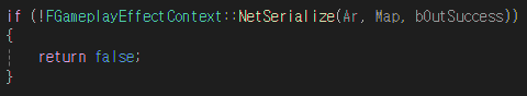 - 부모 클래스인 GameplayEffectContext에서 이미 사용하는 비트를 직렬화