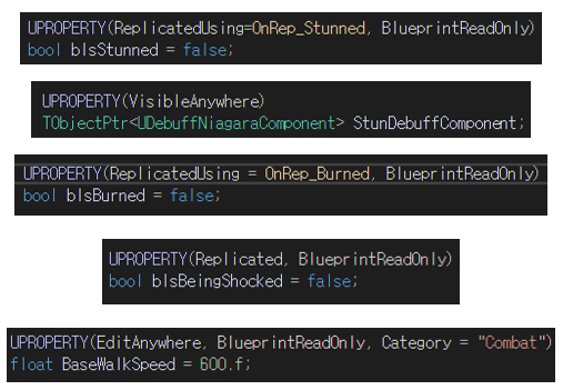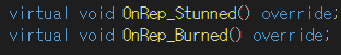- OnRep_Burned 함수 : 화상 상태 Tag가 변경되면 레플리케이션하면서 호출하는 콜백 함수