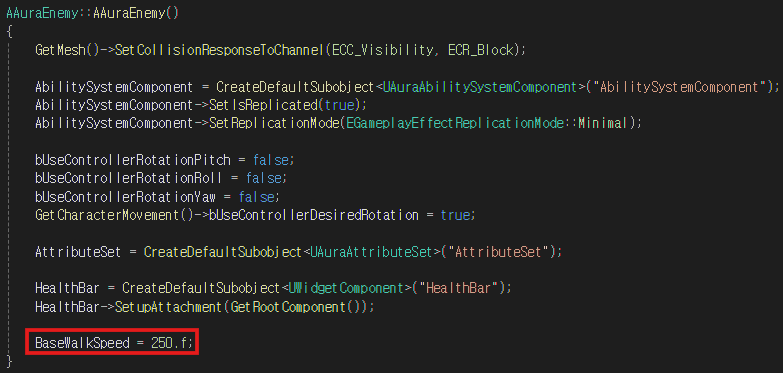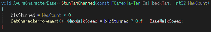 - BaseWalkSpeed : 기절 상태에서는 모든 캐릭터가 움직일 수 없어야 하므로 부모 클래스로 이전