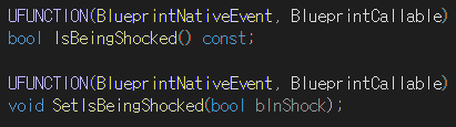 - IsBeingShocked 함수 : 상속받은 함수를 오버라이드