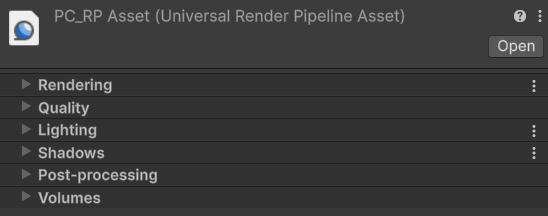 Project Settings - Graphics - Default Render Pipeline에서 프로젝트에서 사용할 기본 RP 애셋을 설정할 수 있다