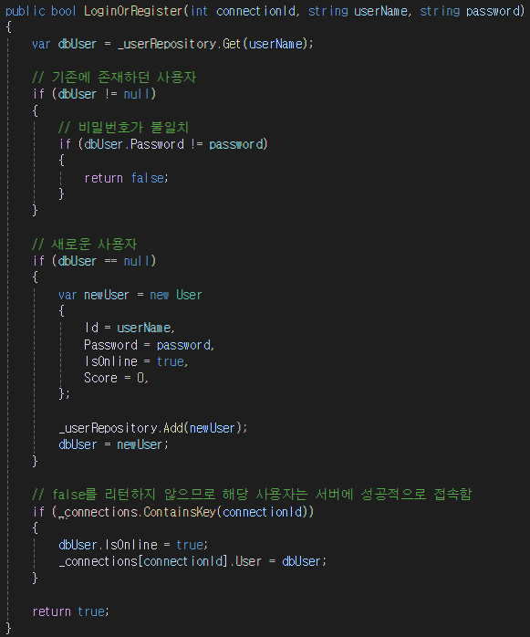 LoginOrRegister 함수의 로직은 위와 같다