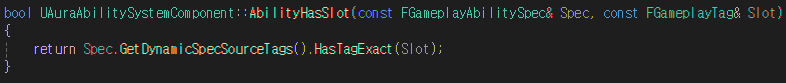 인자로 받은 GASpec의 어빌리티에 인자로 받은 Slot 태그가 존재하는지 판단한다