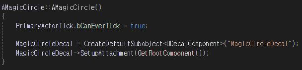 생성자에서는 DecalComponent 멤버변수를 생성한다