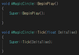 BeginPlay 함수와 Tick 함수에서는 부모 버전의 함수를 호출한다