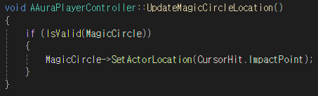 UpdateMagicCircleLocation 함수에서는 소환진의 위치를 커서의 위치로 변경한다