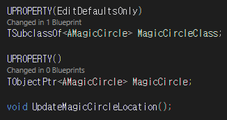 소환진의 인스턴스를 생성하기 위한 TSubclssOf 포인터 멤버변수를 추가하고,