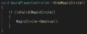 HideMagicCircle 함수에서는 생성한 소환진의 인스턴스를 제거한다