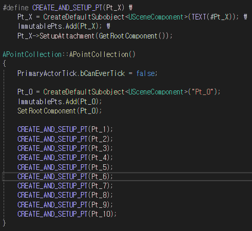 1번째부터 10번째 파편의 위치는 매크로를 사용하여 RootComponent에 Attach하는 방식으로 생성한다