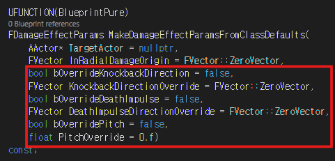 MakeDamageEffectParamsFromClassDefaults 함수를 위와 같이 수정하여