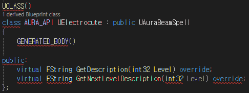 BeamSpell 클래스를 상속받아 전기광선의 부모 클래스로 사용할 Electrocute 클래스를 생성한다
