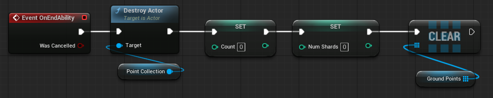 OnEndAbility 이벤트를 새롭게 정의하여 로직에서 설정한 변수들을 전부 초기화한다