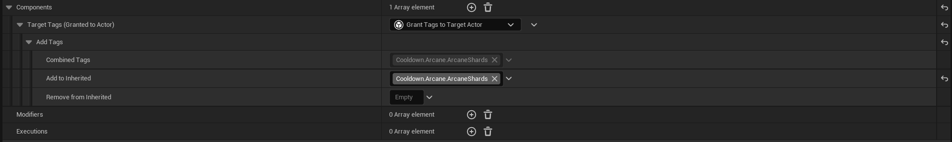 해당 GE가 적용되는 동안 "Cooldown_Arcane_ArcaneShards" 태그를 Target에게 부여한다