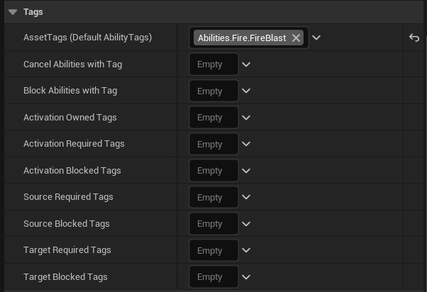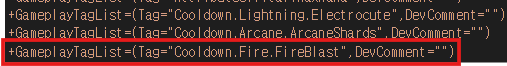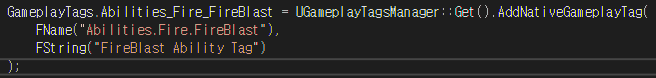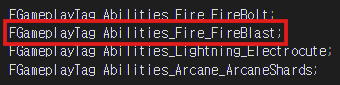 위와 같이 화염 폭풍 스킬의 GameplayTag를 추가 + 생성한다