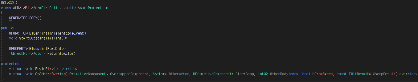 멤버변수 ReturnToActor를 설정하여 발사된 화염구가 돌아오기 위한 Actor를 지정한다