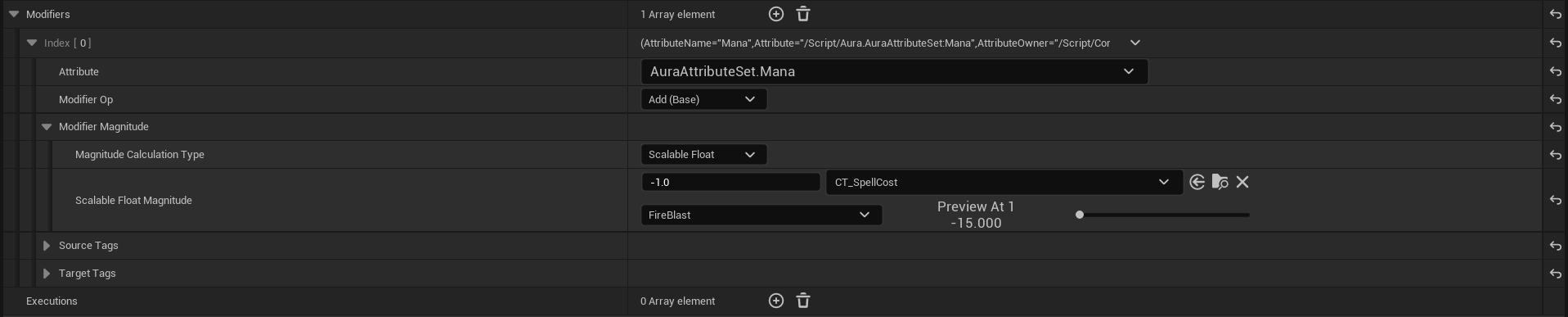 화염 폭풍 스킬을 사용하기 위한 비용을 위와 같이 설정하여 선형적으로 Mana를 소모한다