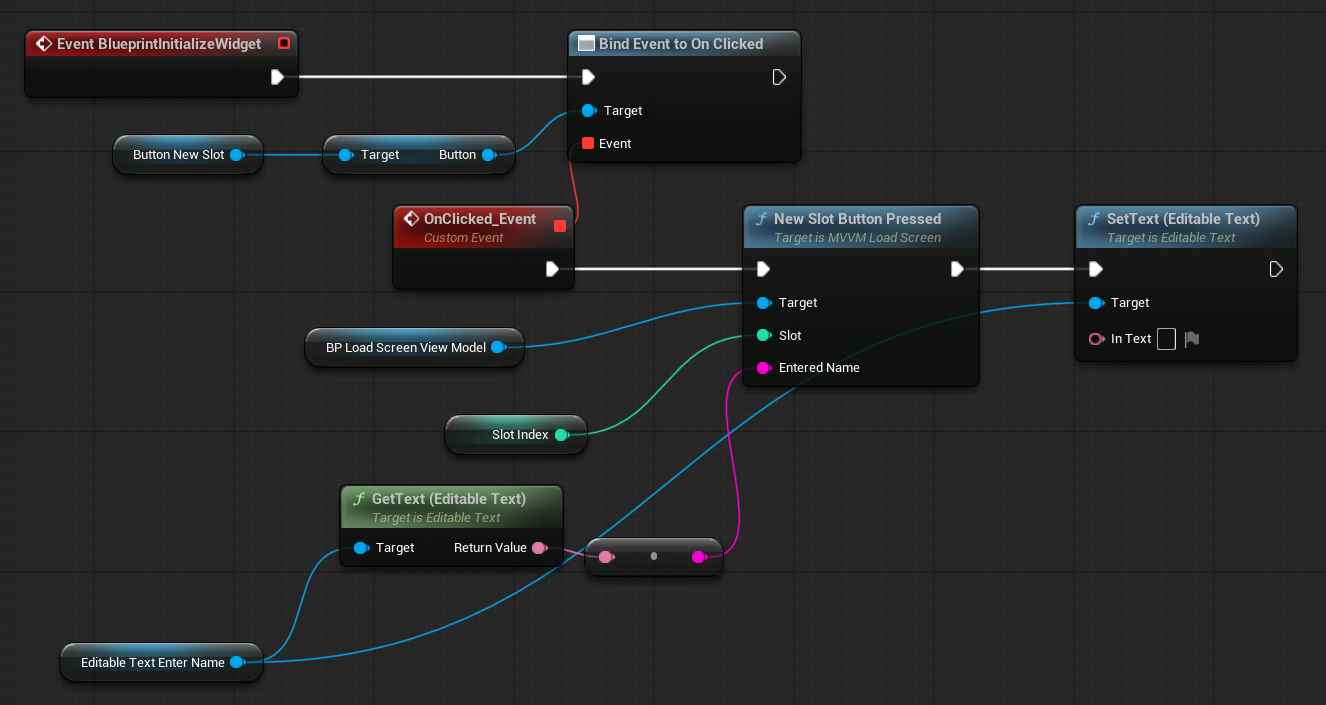 버튼의 OnClicked 이벤트를 설정하여 클릭한 슬롯으로부터 NewGameButtonPressed 함수를 호출한다