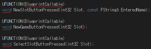 SelectSlotButtonPressed 함수의 경우 정의만하고 로직은 구성하지 않았다