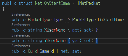 INetPacket 인터페이스를 상속받아 게임의 시작을 알리는 Net_OnStartGame 패킷을 생성하였다