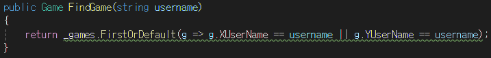 FindGame 함수는 위와 같이 구성하여 멤버변수에서 인자로 받은 플레이어의 이름이 포함된 Game을 반환한다