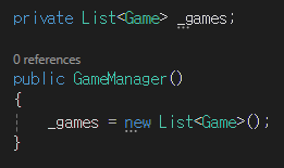 멤버변수는 위와 같이 Game 클래스를 저장하는 List를 갖고 있도록 하고