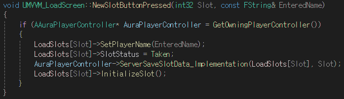 NewSlotButtonPressed 함수를 위와 같이 추가하여