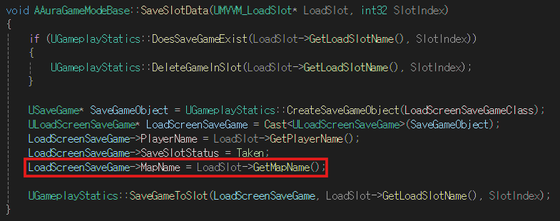 GameMode를 가져와서 데이터 슬롯에 저장할 맵의 이름을 설정한다