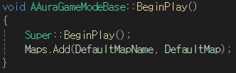 BeginPlay 함수를 추가하고 Maps 멤버변수에 기본적으로 불러올 맵을 추가한다
