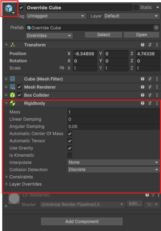 프리팹 variant는 원본 프리팹의 영향을 받지만 수정한 부분에 대해서는 원본 프리팹의 영향을 받지 않게 된다
