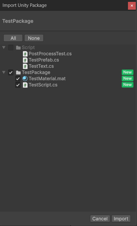 Package 파일은 zip 파일과 다르게 각 파일의 .meta 파일을 함께 저장한다