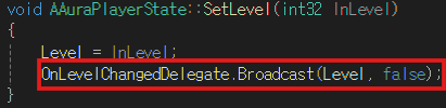 플레이어의 레벨이 변경되면 브로드캐스트를 수행하는 OnLevelChanged 델리게이트를 추가한다