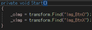 Start 함수는 위와 같이 구성하여 자식 오브젝트들을 찾아 _oImg 멤버변수와 _xImg 멤버변수를 설정한다