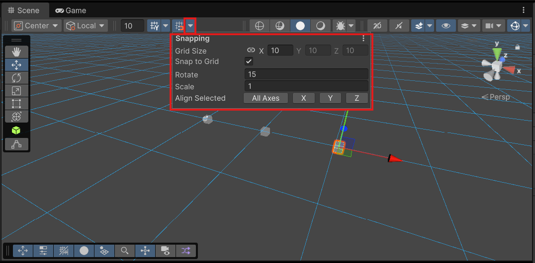 해당 기능은 오브젝트를 이동, 회전, 스케일링할 때 정해진 단위인 Grid에 정확히 맞추기 위해 사용한다