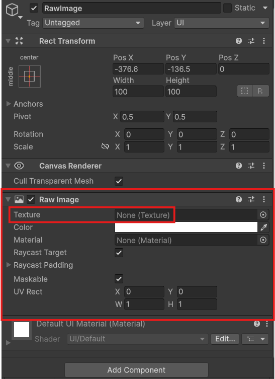 Raw Image 컴포넌트의 Texture에서 Render Texture 애셋을 할당하여 사용할 수 있다