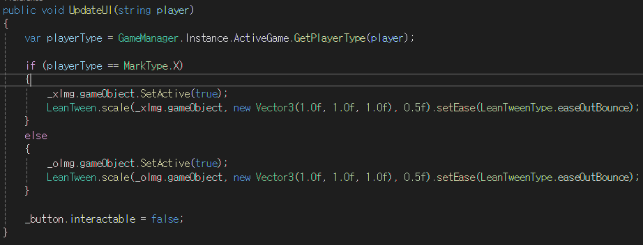 - UpdateBoard 함수 : 인자로 받은 Net_OnMarkCell 패킷의 플레이어가 선택한 보드판의 칸을 업데이트