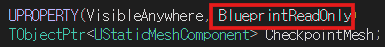CheckpointMesh 멤버변수에 BlueprintReadOnly 어트리뷰트를 추가하여 읽기 전용으로 설정한다