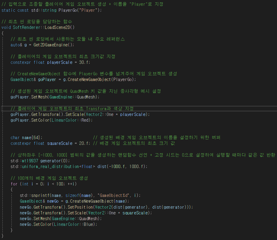 2단계 씬 구축 과정에서 호출하는 LoadScene2D 함수의 로직은 위와 같다