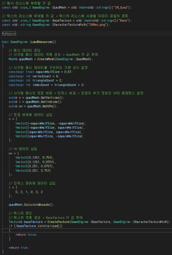 - 게임이 시작되기 전에 한 번만 실행하고 LoadResource 함수를 호출하여 수행