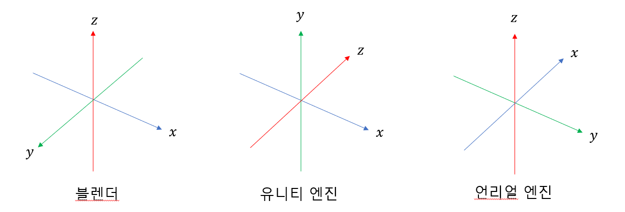 - 블렌더 : Z업 오른손 좌표계