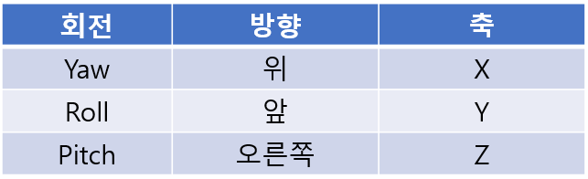 - 프로젝트에서의 Yaw / Roll / Pitch 구현
