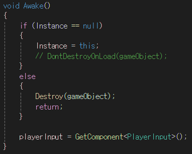 싱글톤 인스턴스를 생성하고 PlayerInput 컴포넌트를 가져온다
