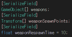 - weaponSpawnPoints 멤버변수 : 무기 스포너의 위치