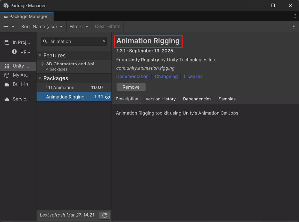 유니티에서 애니메이션 리깅을 Animation Rigging 패키지를 설치하여 수행한다