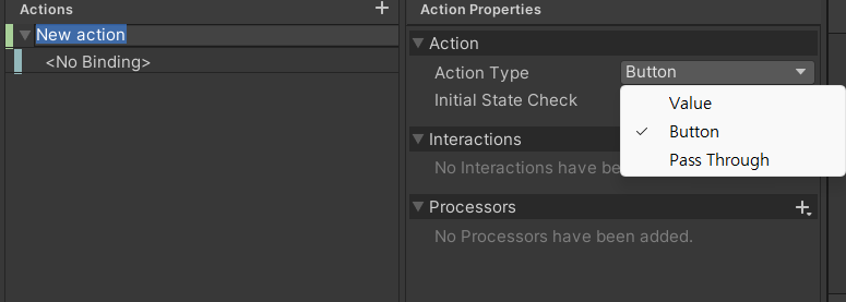 Action Asset의 단계에서는 입력을 다음과 같이 정의할 수 있습니다.