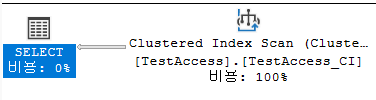 Clustered Index Scan이 나오는 것을 보면 현재 인덱스 Scan으로 동작하는 것을 알 수 있습니다.